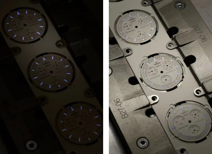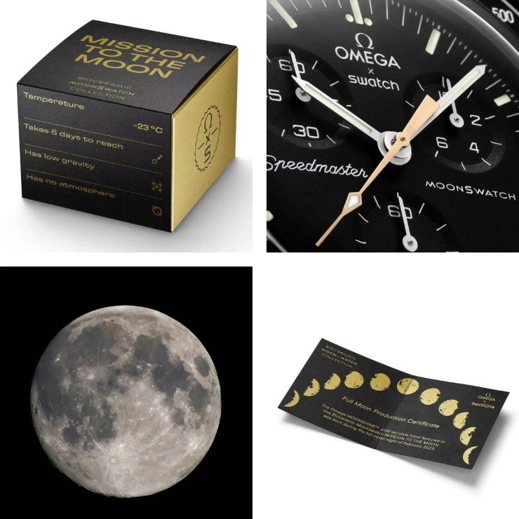 斯沃琪全新的Mission to Moonshine Gold手表,跟原先的Mission to the Moon相比,有两大不同:一是应用欧米茄专利的18k月光金,为计时指针镀金;二是镀金时间是在2月份某日满月期间完成的。不得不说,这是一个完美的营销故事。其实,真正区别就是那一根镀金的计时指针。因为这根针,于是又可以加价25瑞郎。
